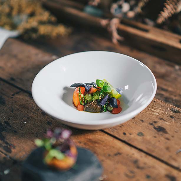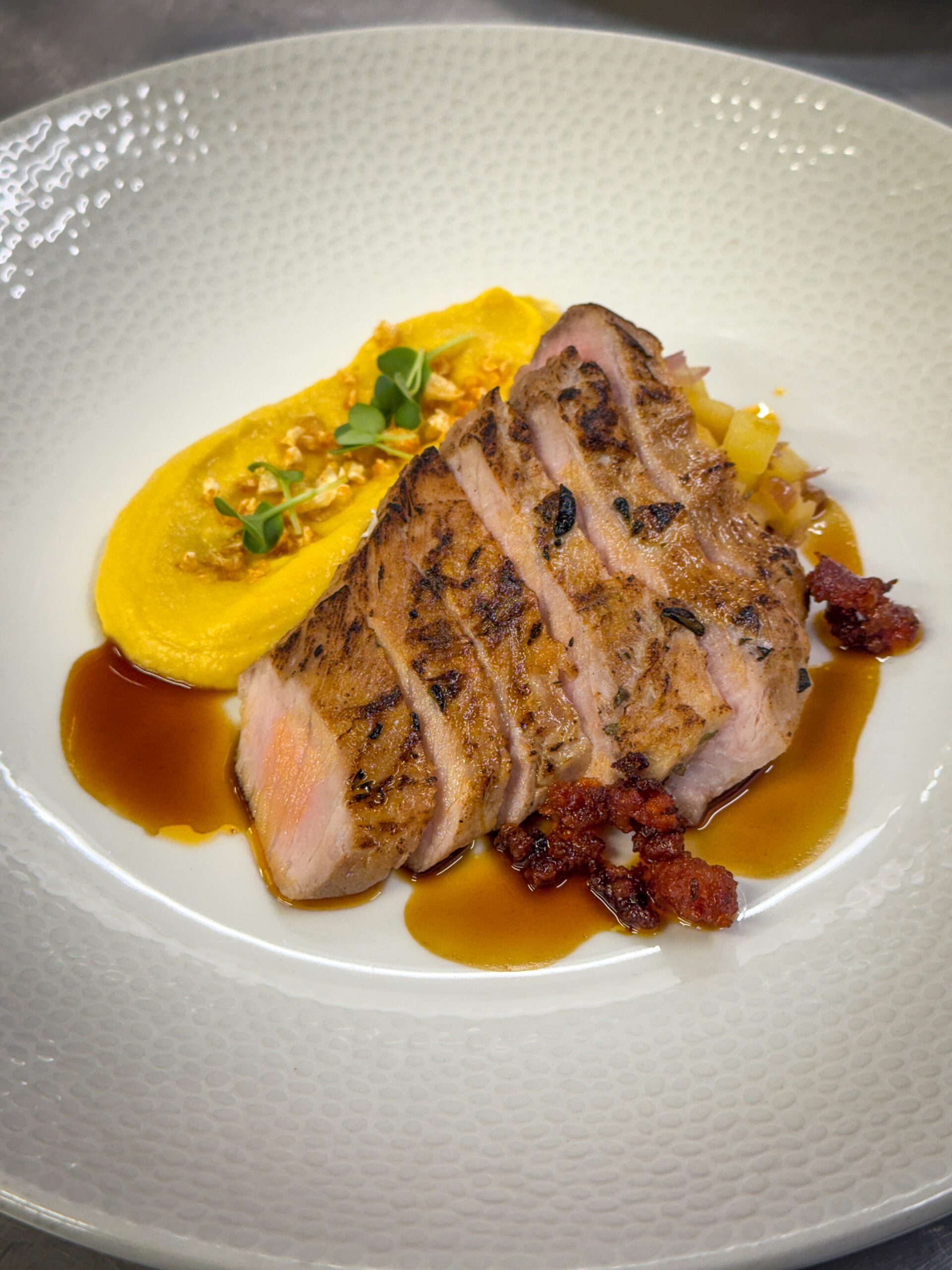 22.9serviert mit einer cremigen Petersilienwurzel Velouté und Bergkäse-Crumbles
